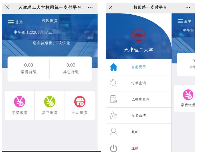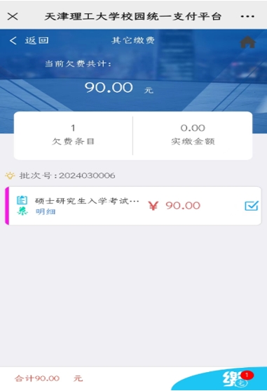 登录天津理工大学企业号-缴费大厅。缴费流程同上,缴费成功后保留截图(同上)。