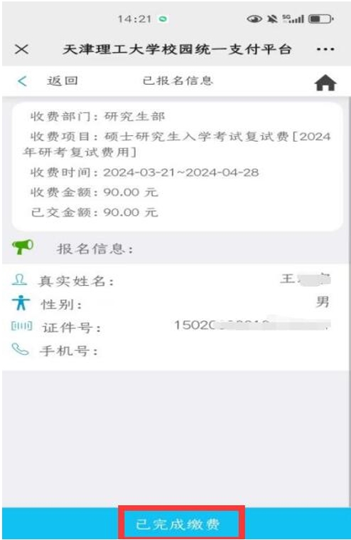 注:若考生无法登录或未查询到缴费信息,请稍后重试。若复试前仍无法缴费,请联系报考学院反馈。
