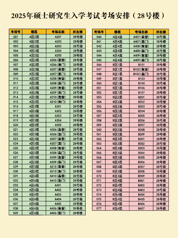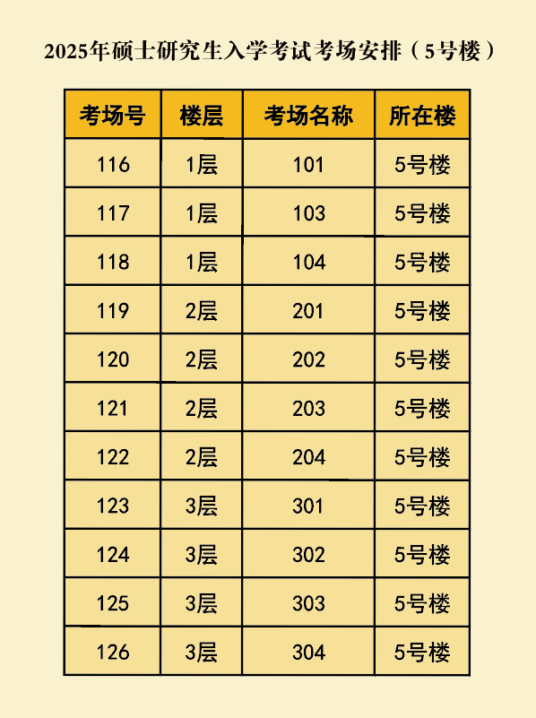 001-077考场设在28号楼、078-115考场设在6号楼、116-126考场设在5号楼。
