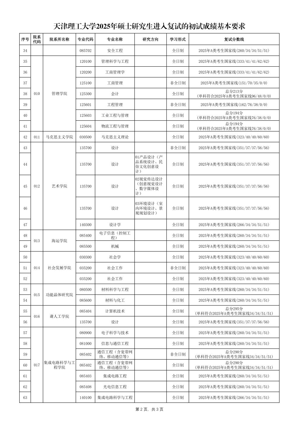 天津理工大学2025年硕士研究生进入复试的初试成绩基本要求