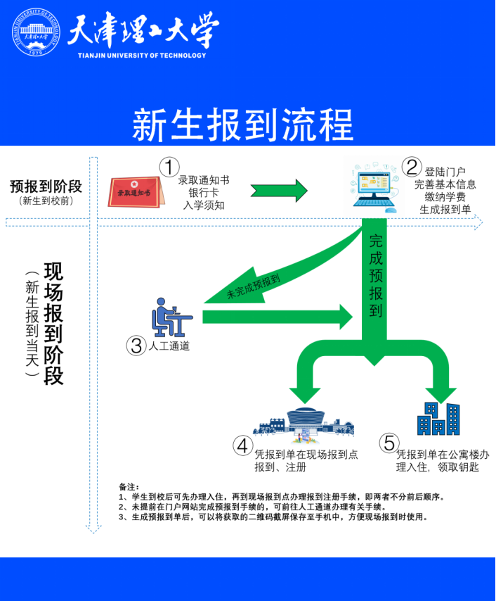 再次祝贺新同学成为天理大家庭的一员!暑假即将结束,为帮助同学们安全、有序入学报到,严格落实疫情防控各项措施,确保全体师生生命安全和身体健康,根据天津市高校秋季开学疫情防控工作要求,特此提醒全体2021级新生和家长关注报到入学和疫情防控注意事项: