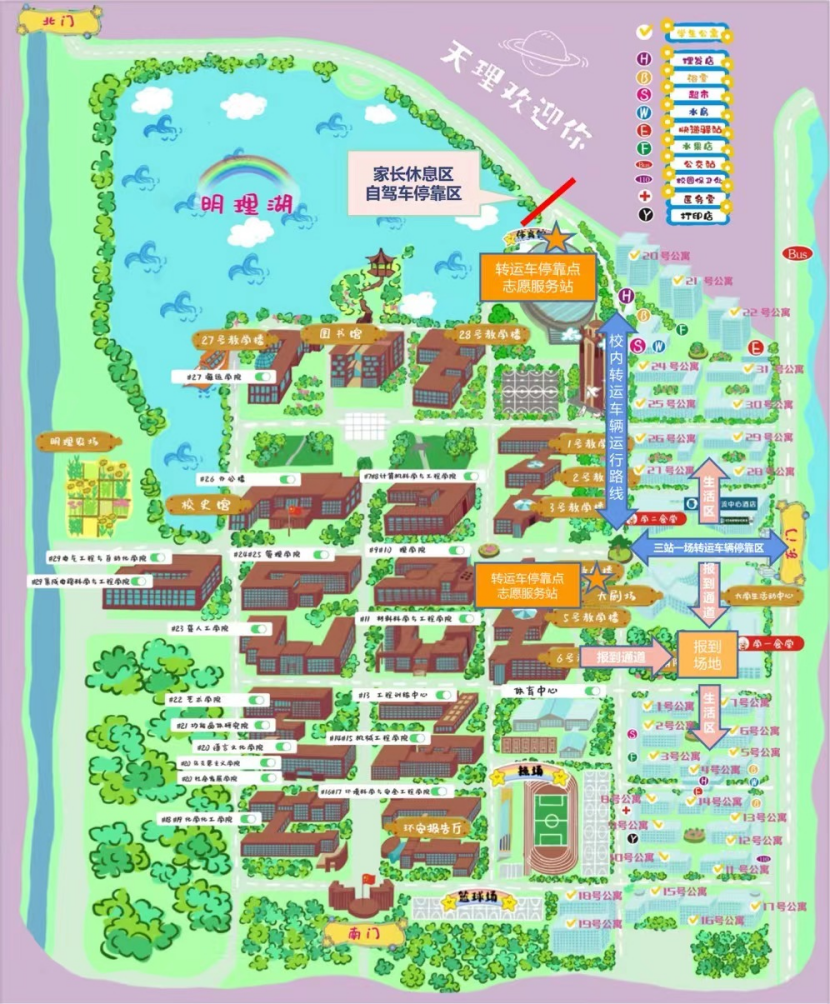 (报到当天,北门仅对乘坐私家车到校的新生及车辆开放)