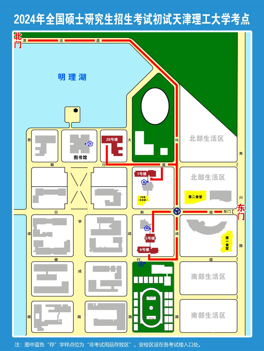 各考试楼考生物品存放处、休息室及考试所在楼宇分布位置见附图。
