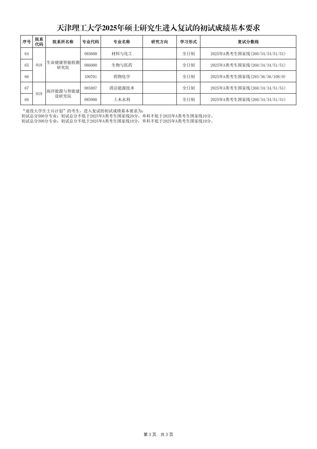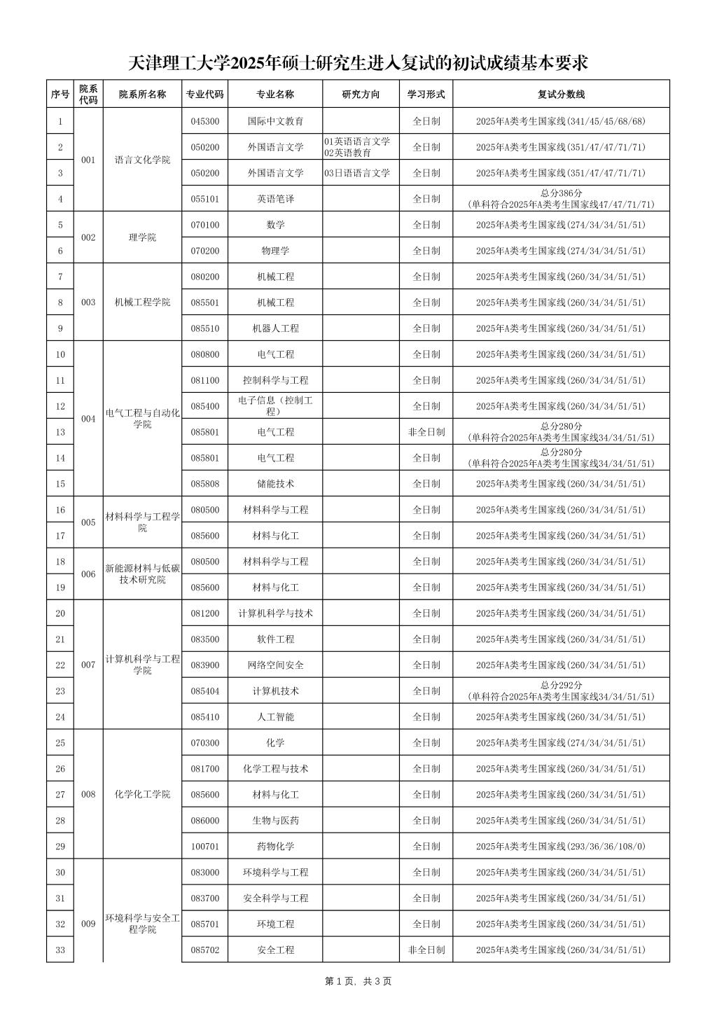 天津理工大学2025年硕士研究生进入复试的初试成绩基本要求
