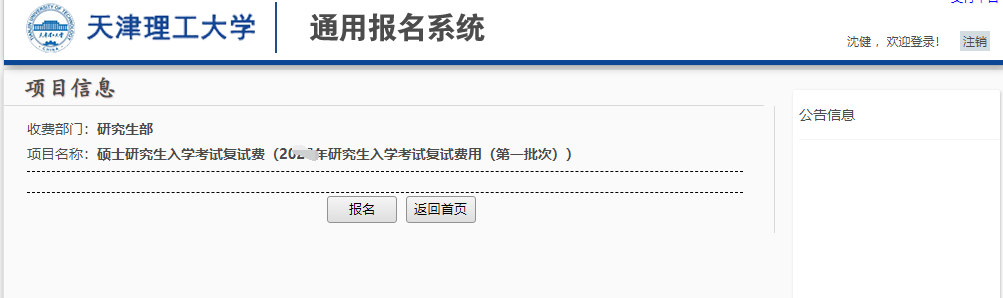 报名之后进行缴费,缴费成功后保留截图(需包含缴费人员信息和缴费信息),复试资格审查提交已完成缴费截图(重新进入菜单-报名系统-报名项目-报名信息-显示截图)。